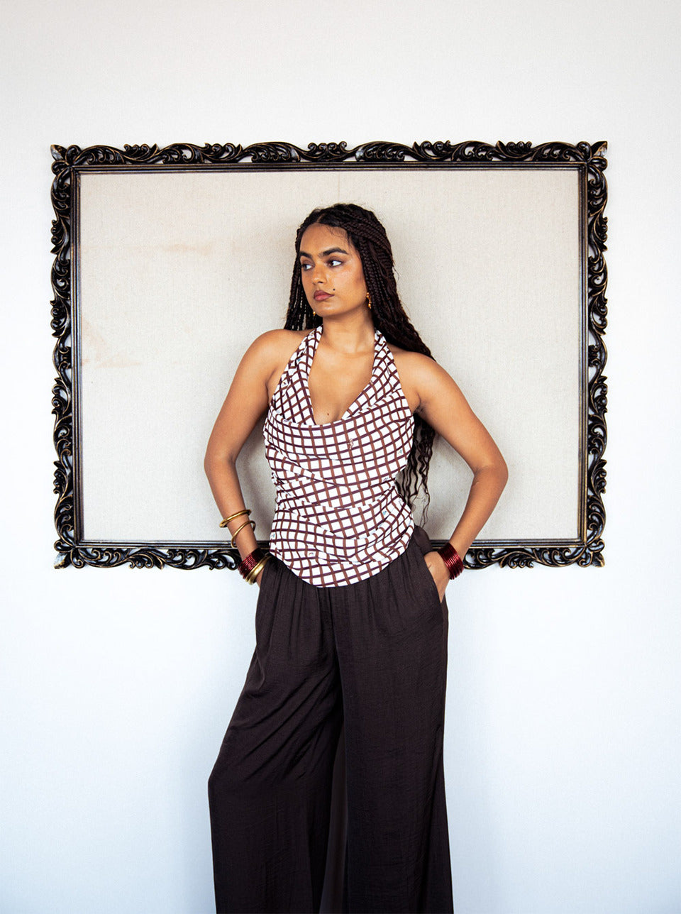 Checkered Cowl Top